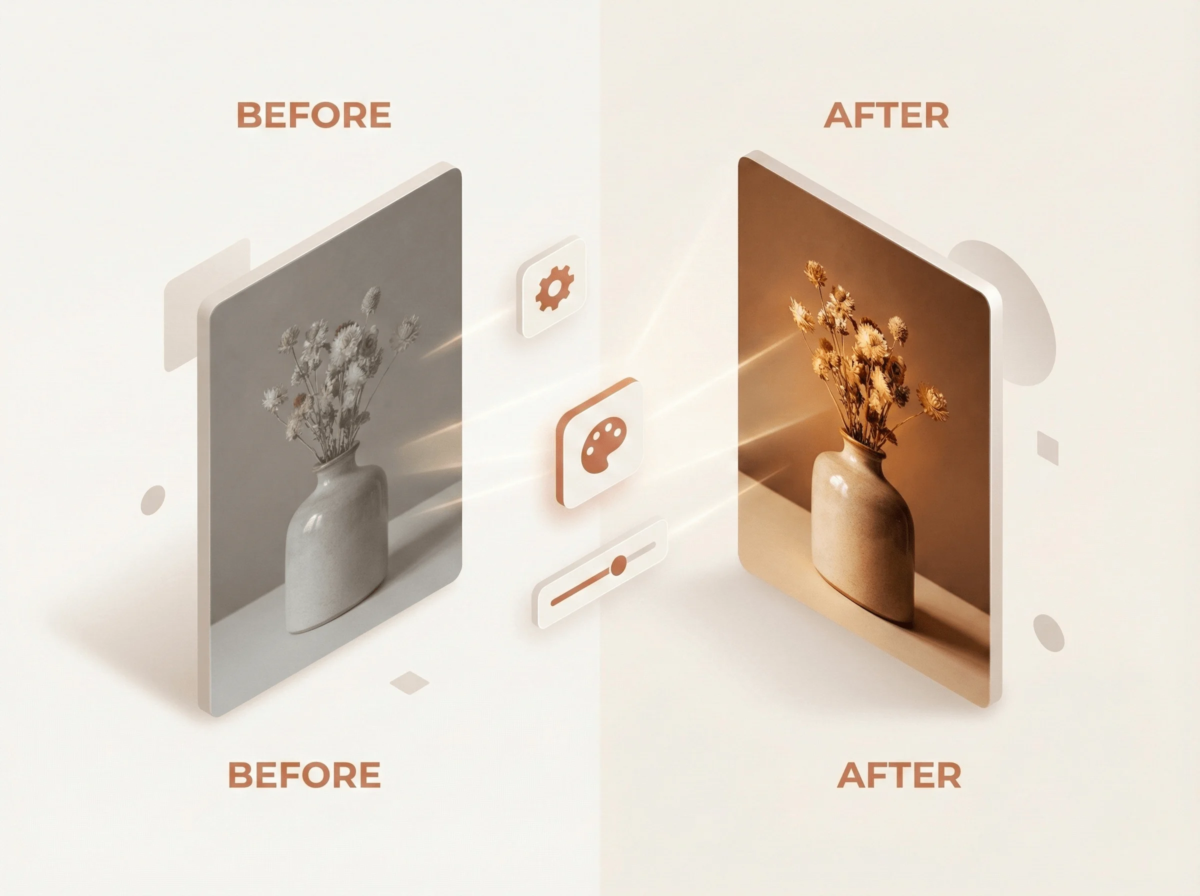 Transform your product photos taken with phone or camera into professional quality with artificial intelligence.